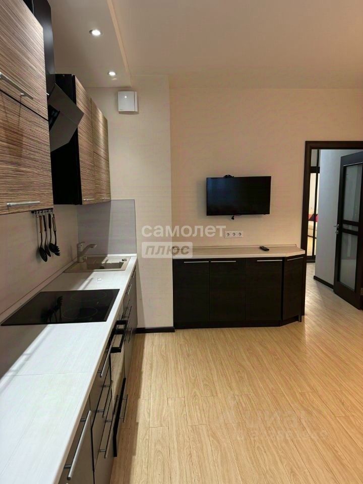 Квартира: Удобная планировка, три изолированные комнаты. Просторные кухня и гостинная, новая техника. Два совмещенных санузла: в одном стоит ванна, в другом душевая и стиральная машина. Балкон. Вся мебель остается новым владельцам.