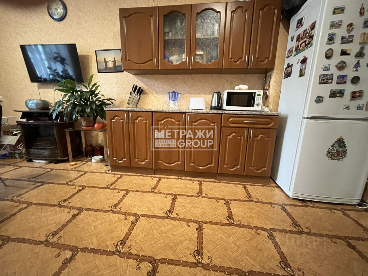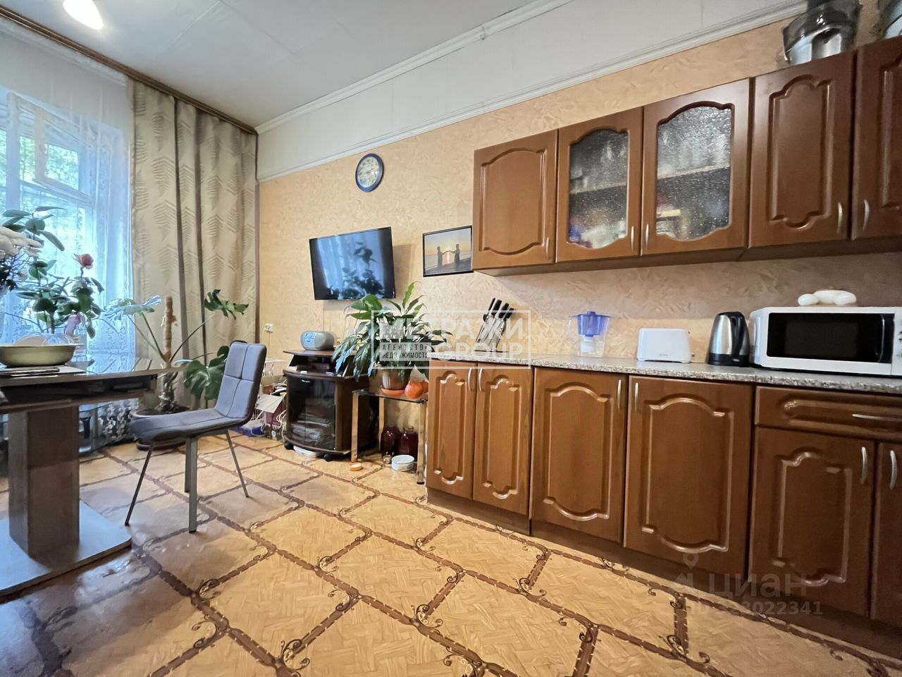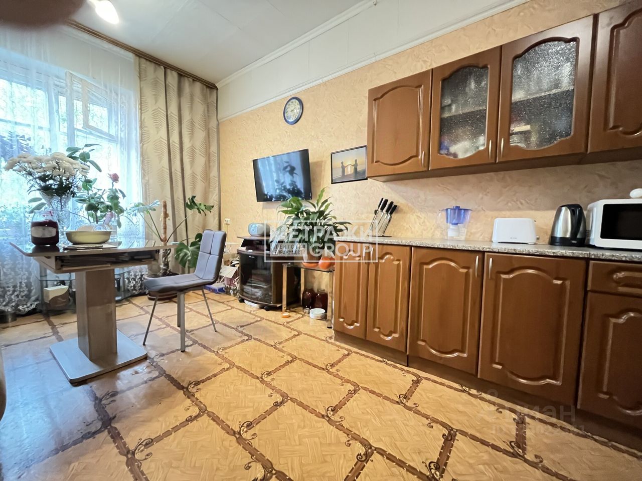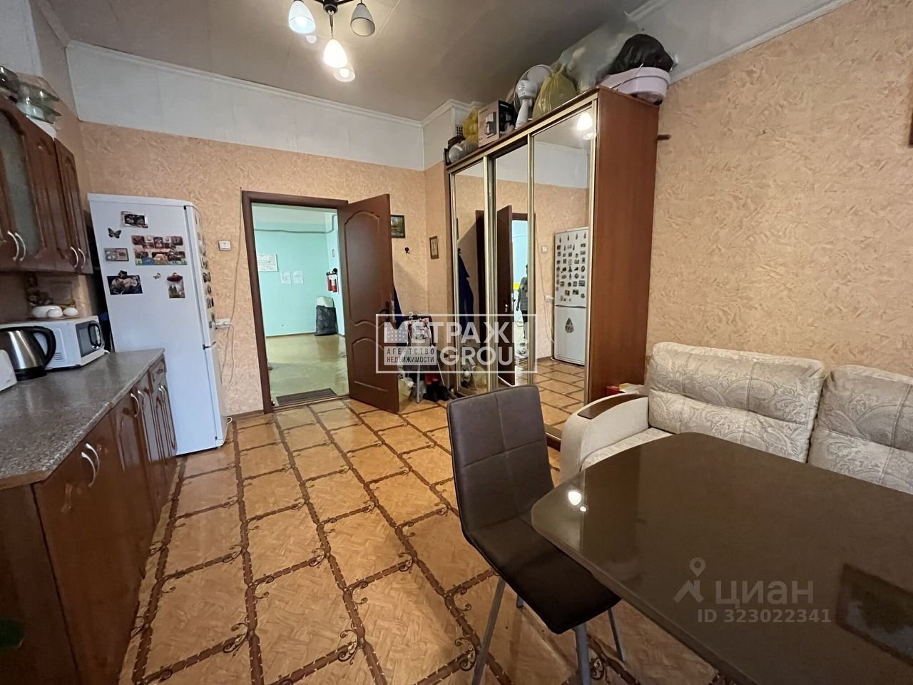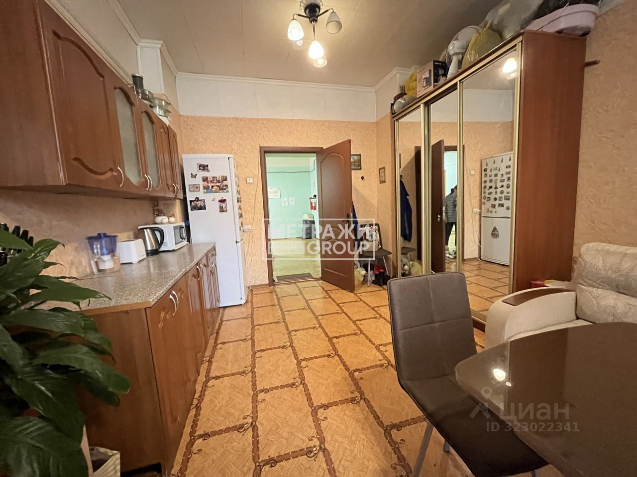 В комнате при продаже остается новому собственнику: кухонный гарнитур и большой шкаф.