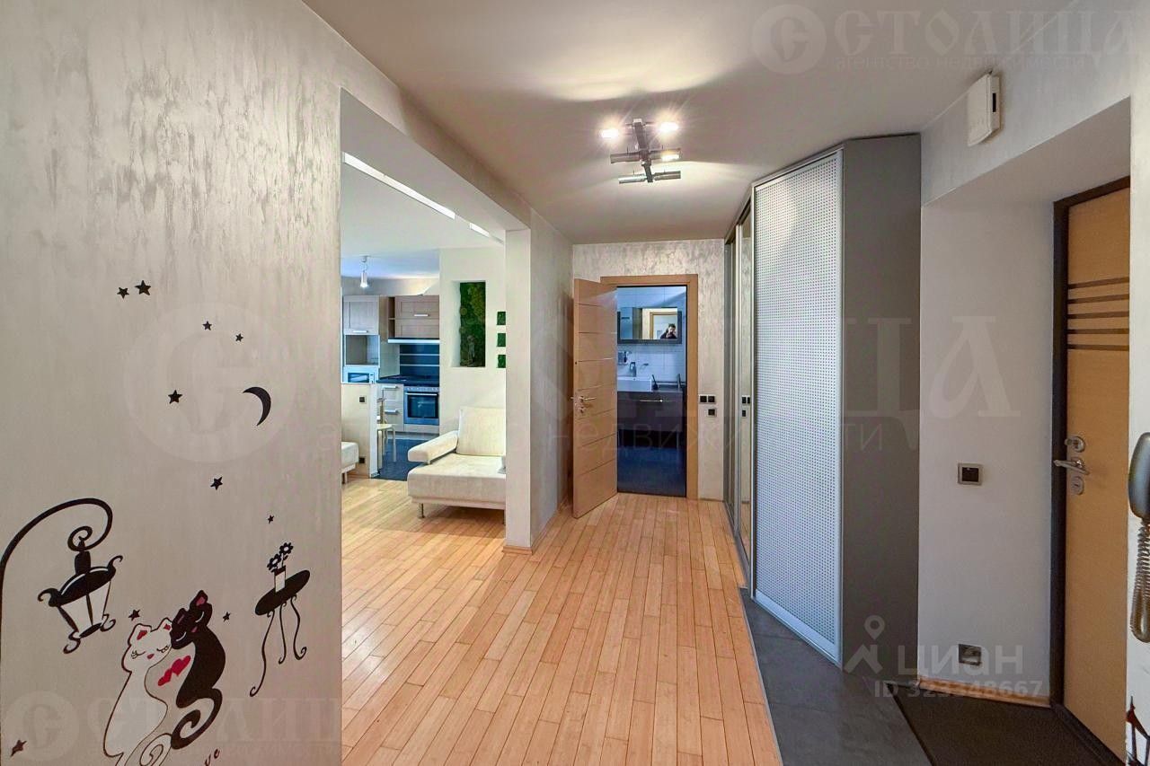 Продается с мебелью: Кухонная мебель с керамогранитной столешницей и раковиной. Встроенная техника ( плита, посудомоечная машинка, гриль, фритюрница, вытяжка Siemens, холодильник Liebherr, микроволновка). Вся мебель в квартире представленная на фотографиях. Встроенный сейф. Кондиционеры тепло/холод в каждой комнате. Полы: кухня -теплый пол, комнаты - штучный паркет из бамбука. В изолированной комнате рабочая зона отделенная от спальной оптимизирована под возможность размещения детской кроватки.