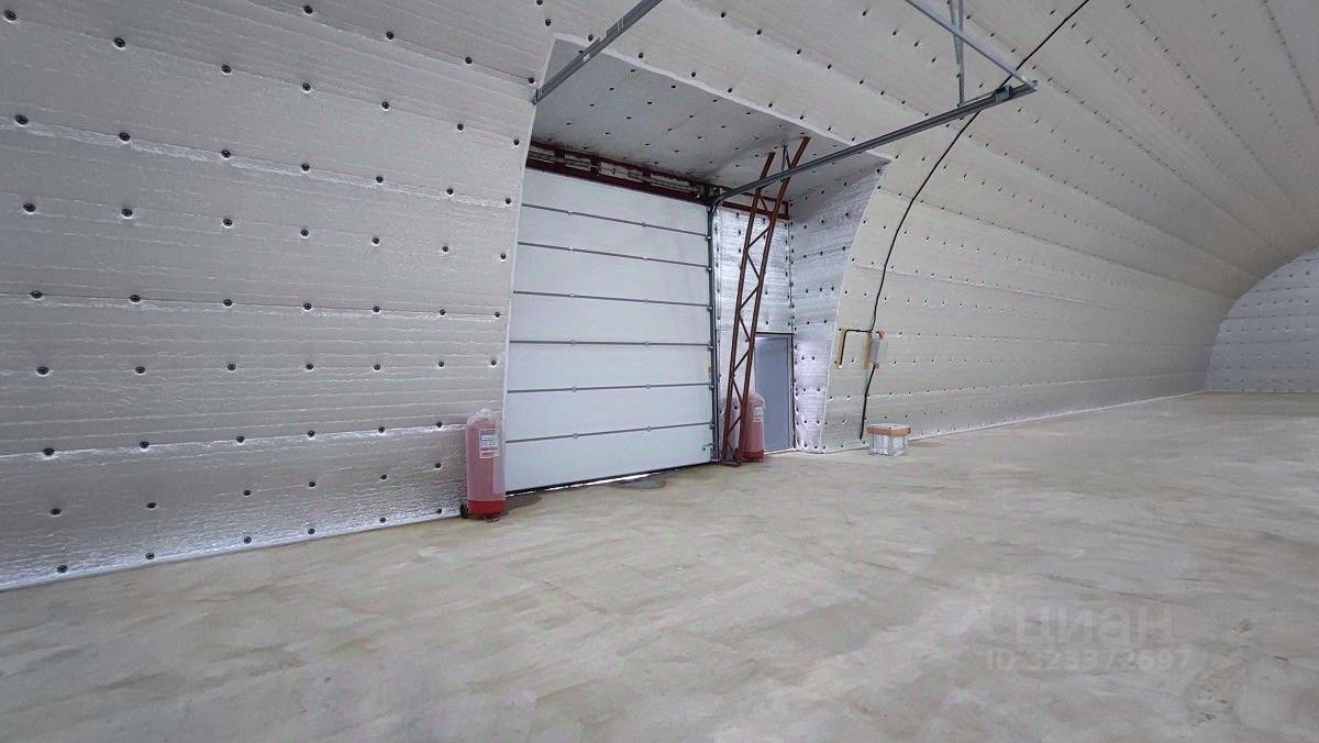 Лот: 418623. БЕЗ КОМИССИИ! Утепленное помещение ангарного типа под склад или небольшое производство. Первый этаж. Одни большие ворота. Высота потолков в коньке — 9 м. Полы ровные, бетонные, с нагрузкой 5т на м2. Светодиодное освещение.