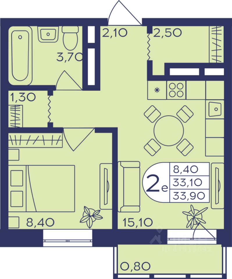 Общая площадь33,7 м2
