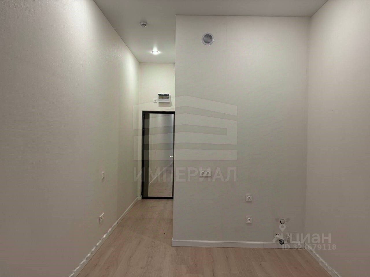 На стенах поклеены обои под покраску, на полу постелен ламинат с плинтусами и откосами. Есть вытяжная вентиляция в санузле и на кухне, выходы хв/гв, место под раковину на кухне. Кроме того, в помещениях уже есть выключатели освещения, розетки для бытовой техники и роутера, а также сделаны закладные для оптоволокна для интернета.