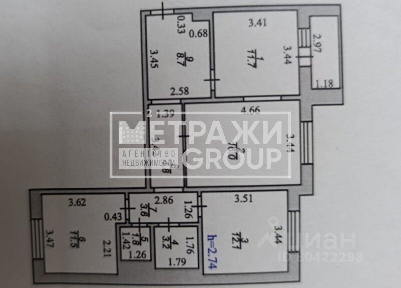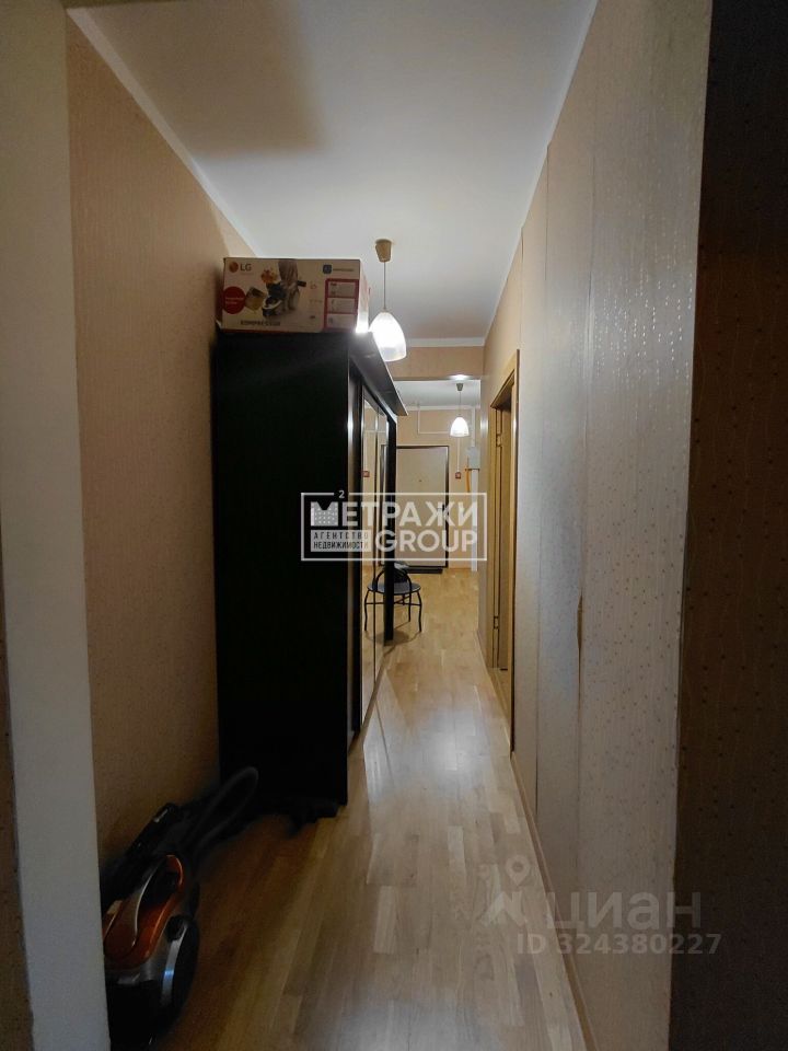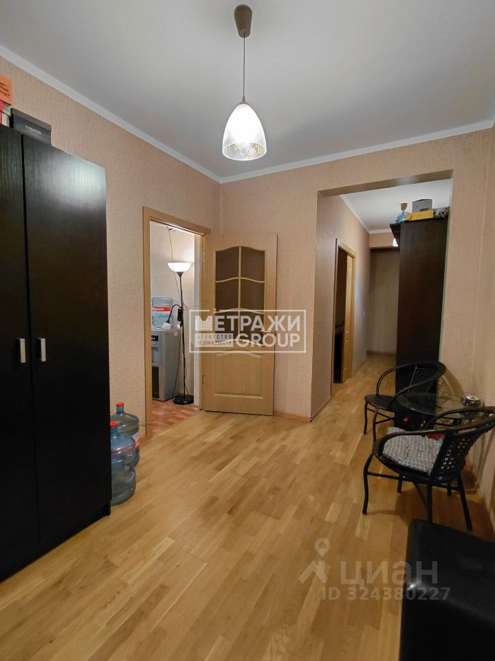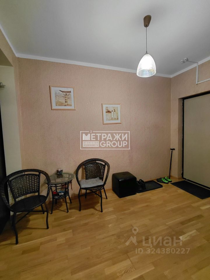 Общая площадь квартиры составляет 73,4 кв. м, из которых 39,6 кв. м — жилая площадь. Высота потолков — 2,74 м. Квартира не угловая, комнаты изолированные, окна выходят во двор. Есть лоджия.