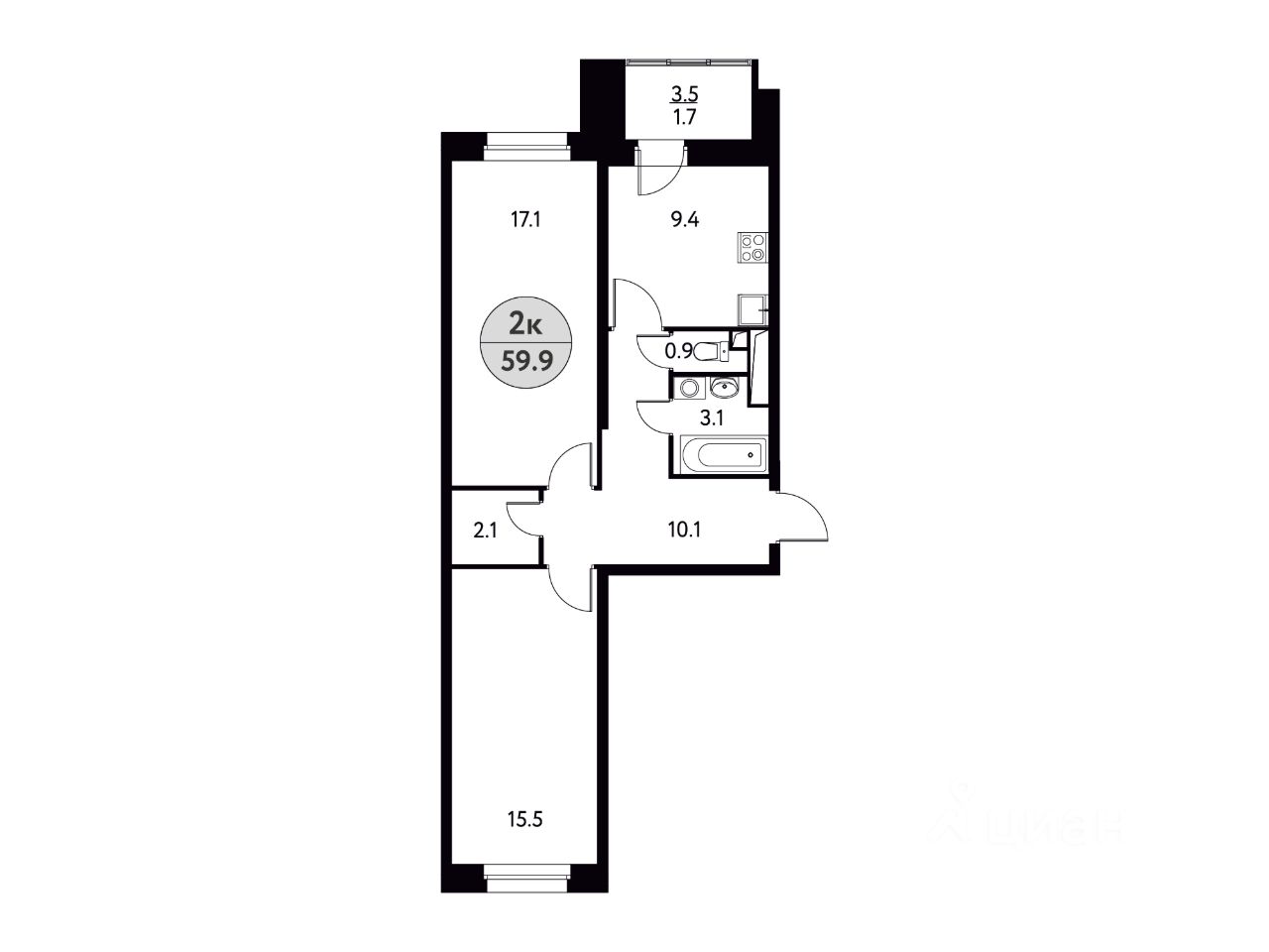 Общая площадь59,9 м2