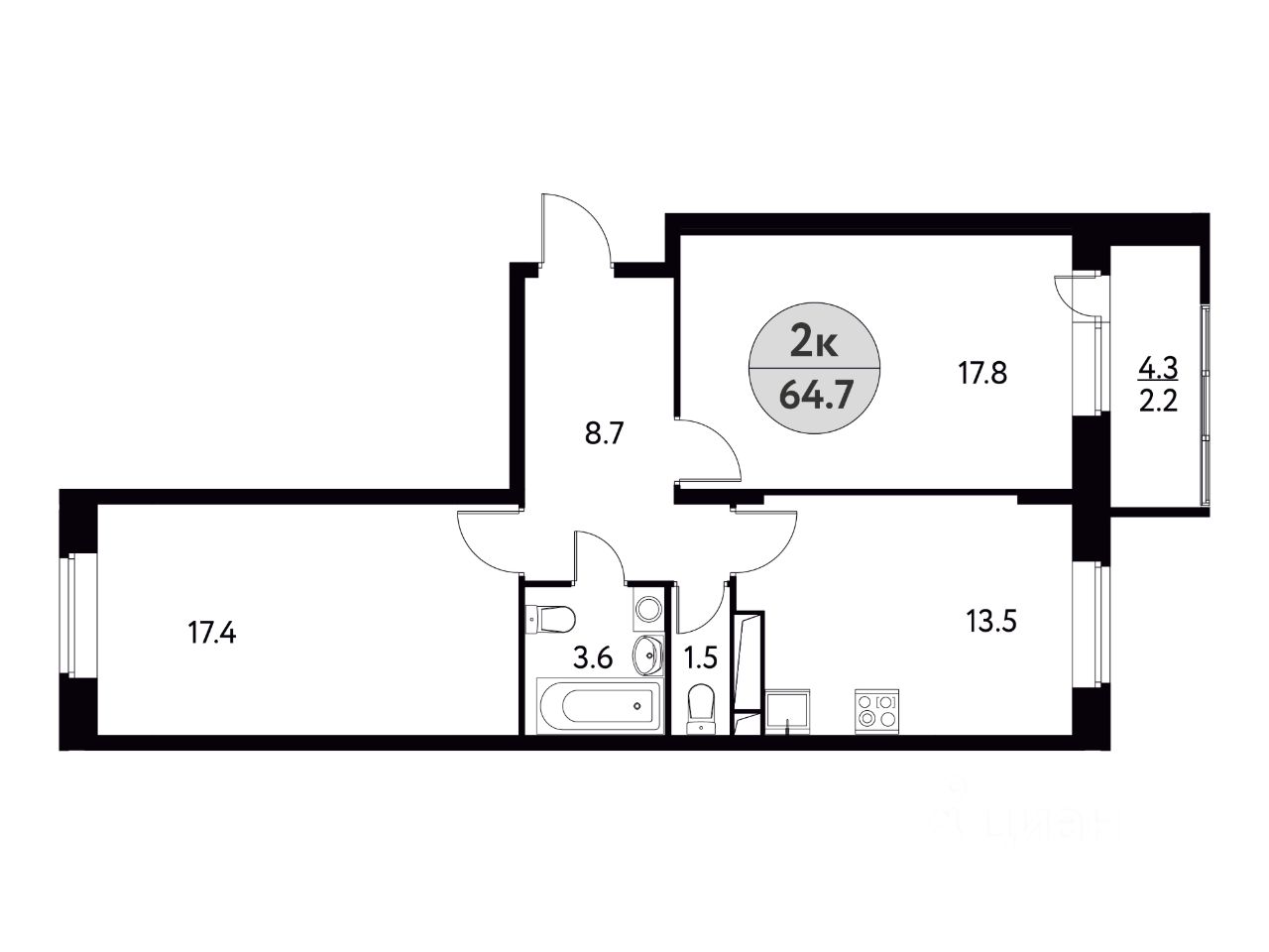 Общая площадь64,7 м2