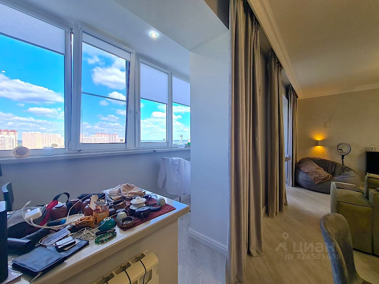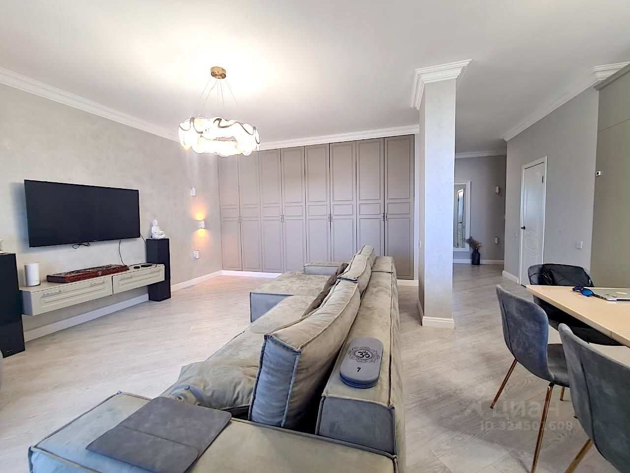Продается просторная, хорошо продуманная, светлая 2-комн. квартира: - укомплектованная кухня со столовой зоной - просторная гостиная - спальня с большой кроватью - раздельный с/у с душем - сенсорные выключатели - умный дом, мастер кнопка - видео домофон, камеры - кварц винил замковой Бельгия, мягкие бесшумные полы - краска и декоративная штукатурка сан марко - мягкая мебель премиум сегмент Катарина Ричи - мебель МДФ, встроенная - система кондиционирования - гкл потолки (ни каких натяжных) - подвесные качели или подвесная скамейка в зоне гостиной (сварная конструкция в стилистики квартиры) - возможность поставить раздвижную перегородку в гостиной и сделать вторую комнату - гардеробная комната - теплые полы