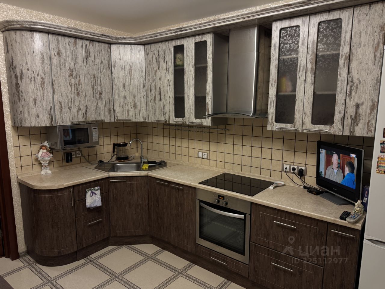 Планировка продуманная и функциональная: отдельная спальная комната, кухня, застеклённая лоджия, гардеробная и совмещённый санузел. Квартира продаётся полностью укомплектованной — можно заехать и жить сразу, без дополнительных вложений. Кухня оснащена гарнитуром и всей необходимой техникой: холодильник, варочная панель, духовой шкаф, микроволновая печь, чайник, стиральная машина, телевизор. Вся сантехника и техника исправны. В жилой комнате — раскладной диван (двуспальное место), раскладное кресло, тумба под ТВ, стеклянные полки с подсветкой, установлен кондиционер. Гардеробная разделена на три зоны хранения, дверцы с зеркалами. В коридоре — встроенный шкаф-купе с зеркалами. Санузел полностью оборудован, аккуратный и ухоженный. Лоджия застеклена, оборудована сушилкой для белья.