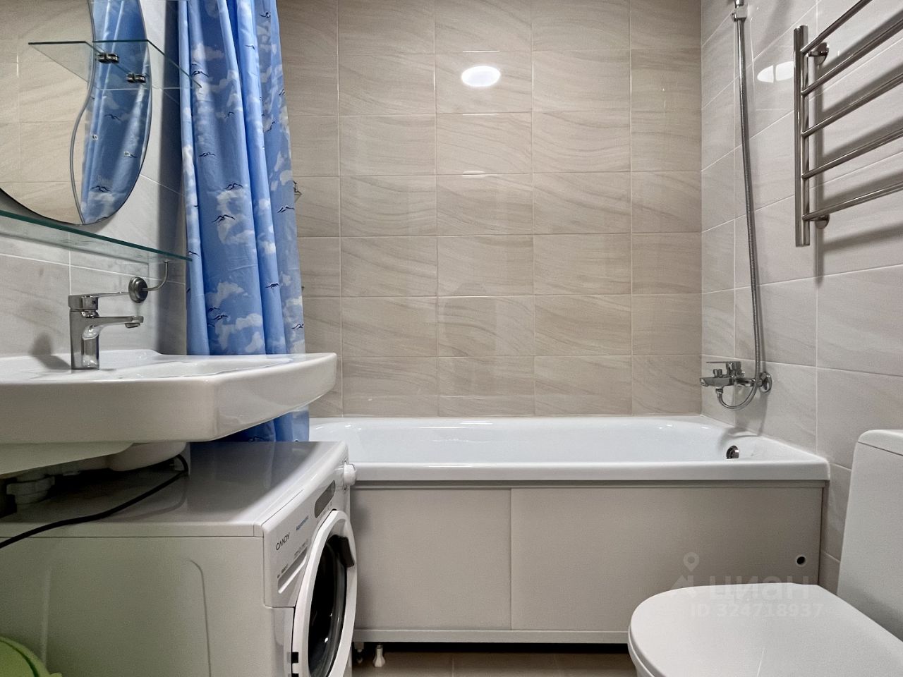 Отдельная градеробная. Сан. узел с полноценной ванной. Есть утепленная лоджия.