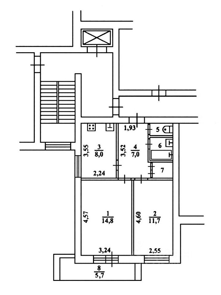 Квартира с удачной планировкой: общая площадь с лоджией 52 кв.м., 2 изолированные комнаты, кухня 8 кв.м., раздельный санузел, кладовка, большая лоджия, окна во двор. Ремонт старый.