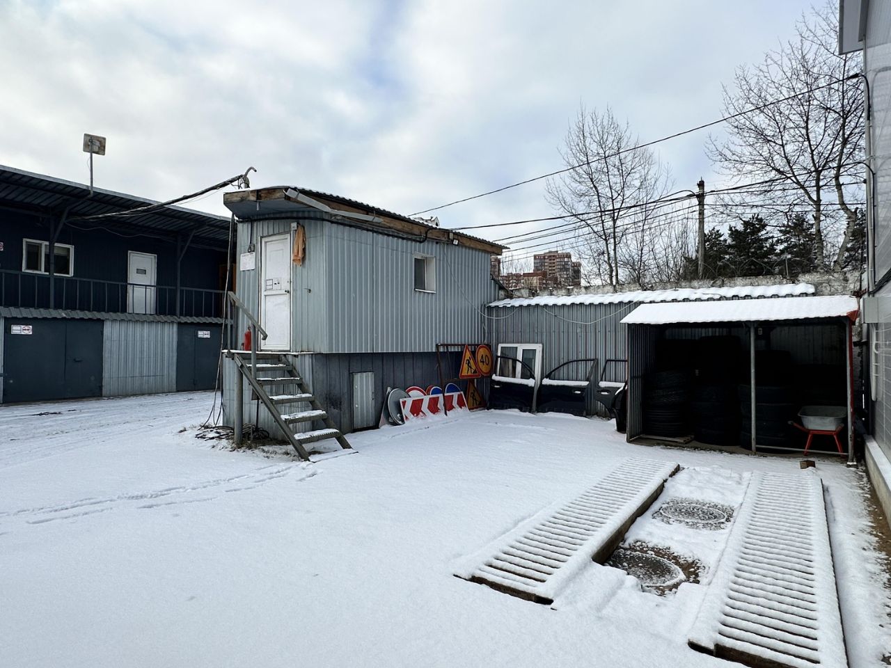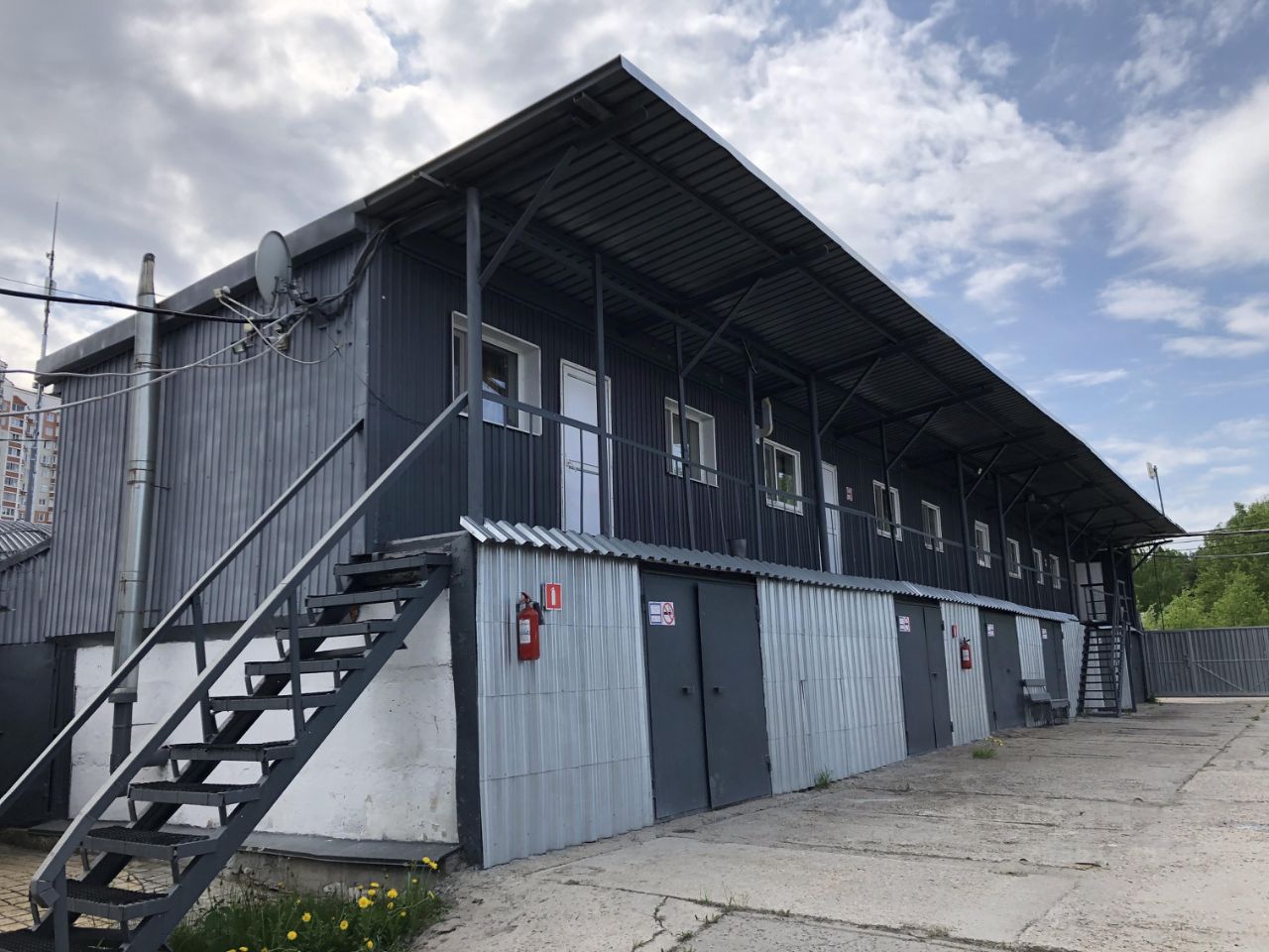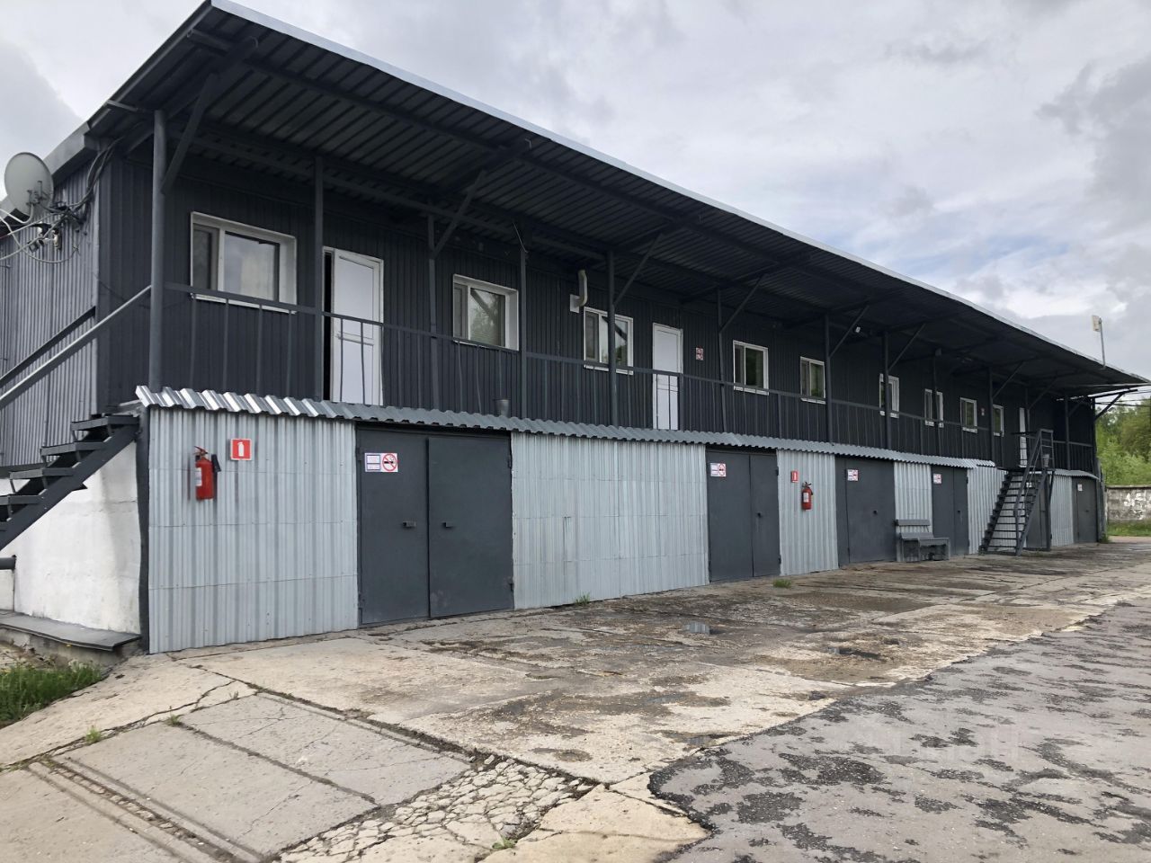 Здание 1. 2-х этажное офисно-складское здание нежилого назначения 237,6 кв.м., стены профилируемый настил с утеплителем, кровля скатная. На первом этаже расположены 6 гаражных боксов (складских помещений) по 20 кв.м, пол железобетонные плиты, Второй этаж административно-офисные помещения 118 кв.м, включая помещение кухни, 2 санузла. Планировка позволяет использовать офисы как в существующем виде, так и разделить на несколько независимых помещений с отдельными входами.