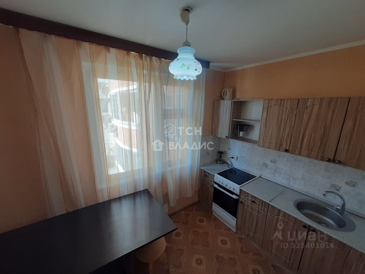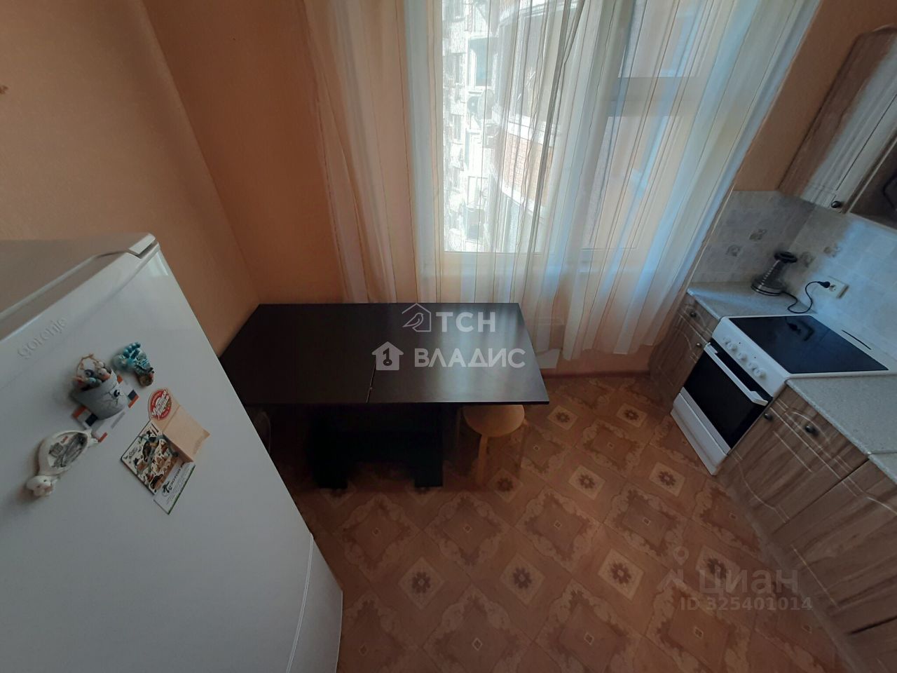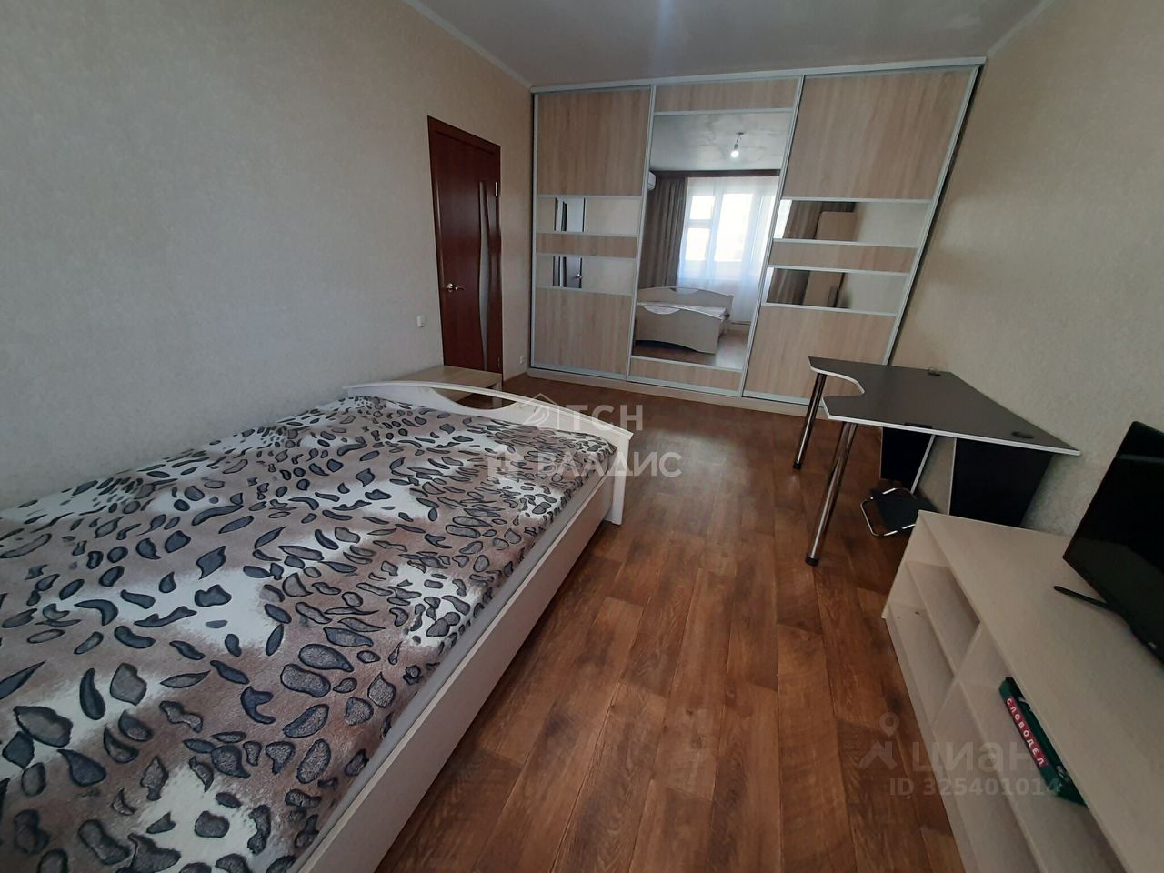 Общая площадь квартиры составляет 37,7 метров без учета застекленной лоджии. Просторная изолированная комната 19 метров оборудована глубоким зеркальным шкафом-купе с разноформатной системой хранения, двуспальной кроватью, рабочим столом, кондиционером, телевизором, журнальным столиком, полками. Спальня продолжается выходом на застекленную лоджию с видом на зеленый ухоженный двор. Просторная кухня 8 метров оборудована кухонным гарнитуром, холодильником, столом, электрической плитой с духовым шкафом, электрическим чайником, фильтром для воды.