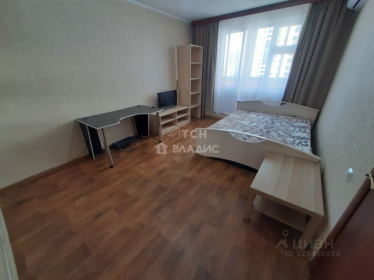Общая площадь квартиры составляет 37,7 метров без учета застекленной лоджии. Просторная изолированная комната 19 метров оборудована глубоким зеркальным шкафом-купе с разноформатной системой хранения, двуспальной кроватью, рабочим столом, кондиционером, телевизором, журнальным столиком, полками. Спальня продолжается выходом на застекленную лоджию с видом на зеленый ухоженный двор. Просторная кухня 8 метров оборудована кухонным гарнитуром, холодильником, столом, электрической плитой с духовым шкафом, электрическим чайником, фильтром для воды. Санузел совмещенный, в хорошем состоянии, установлена стиральная машина. Просторный коридор с дополнительной системой хранения и комодом.