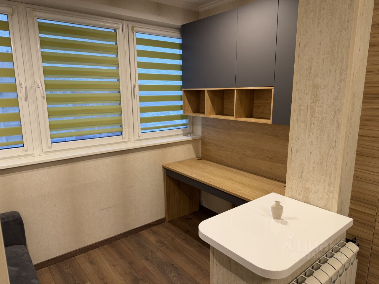 Планировка и фишки: • отдельная детская комната со спортивным комплексом • кладовая очень вместительная, полки переставляются как конструктор • лоджия-кабинет с теплым полом полноценное рабочее место для двоих, а за счет дивана и гостевая зона • спальные места двухместный диван, диван, двухспальная детская кровать.