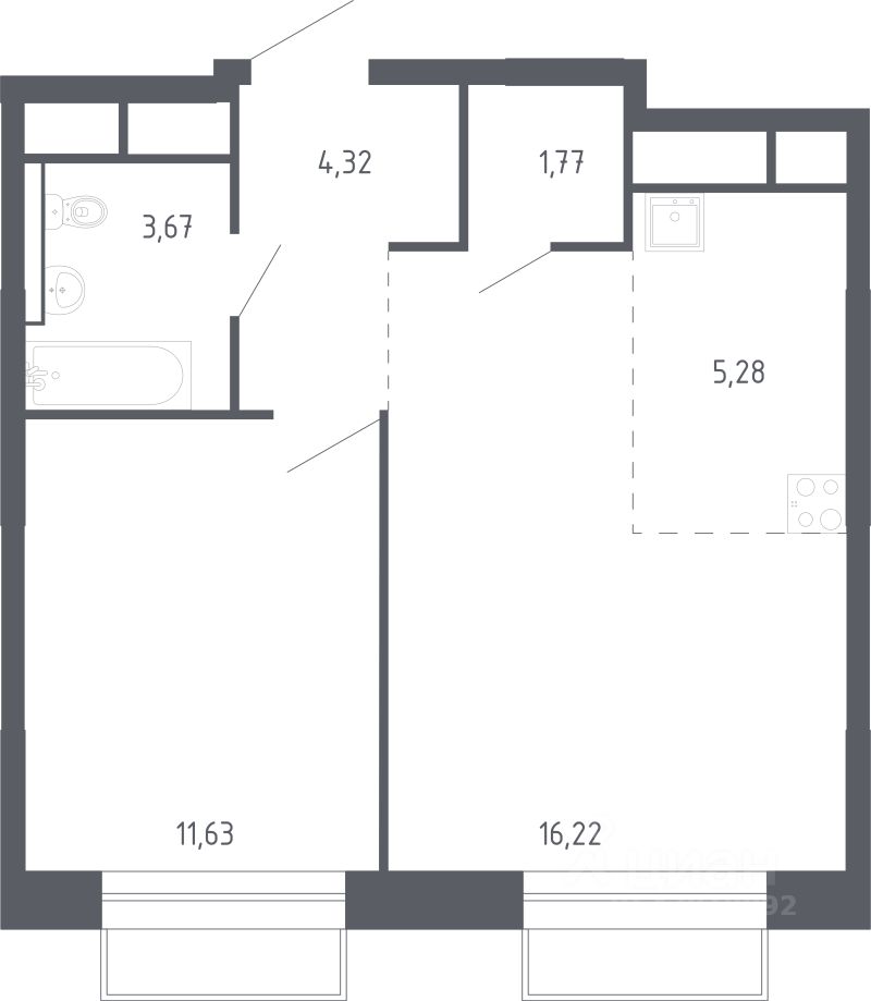 Общая площадь42,2 м2