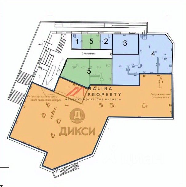 1. Супермаркет ''Дикси'', площадь 492 м2, договор аренды до 2027 года.
