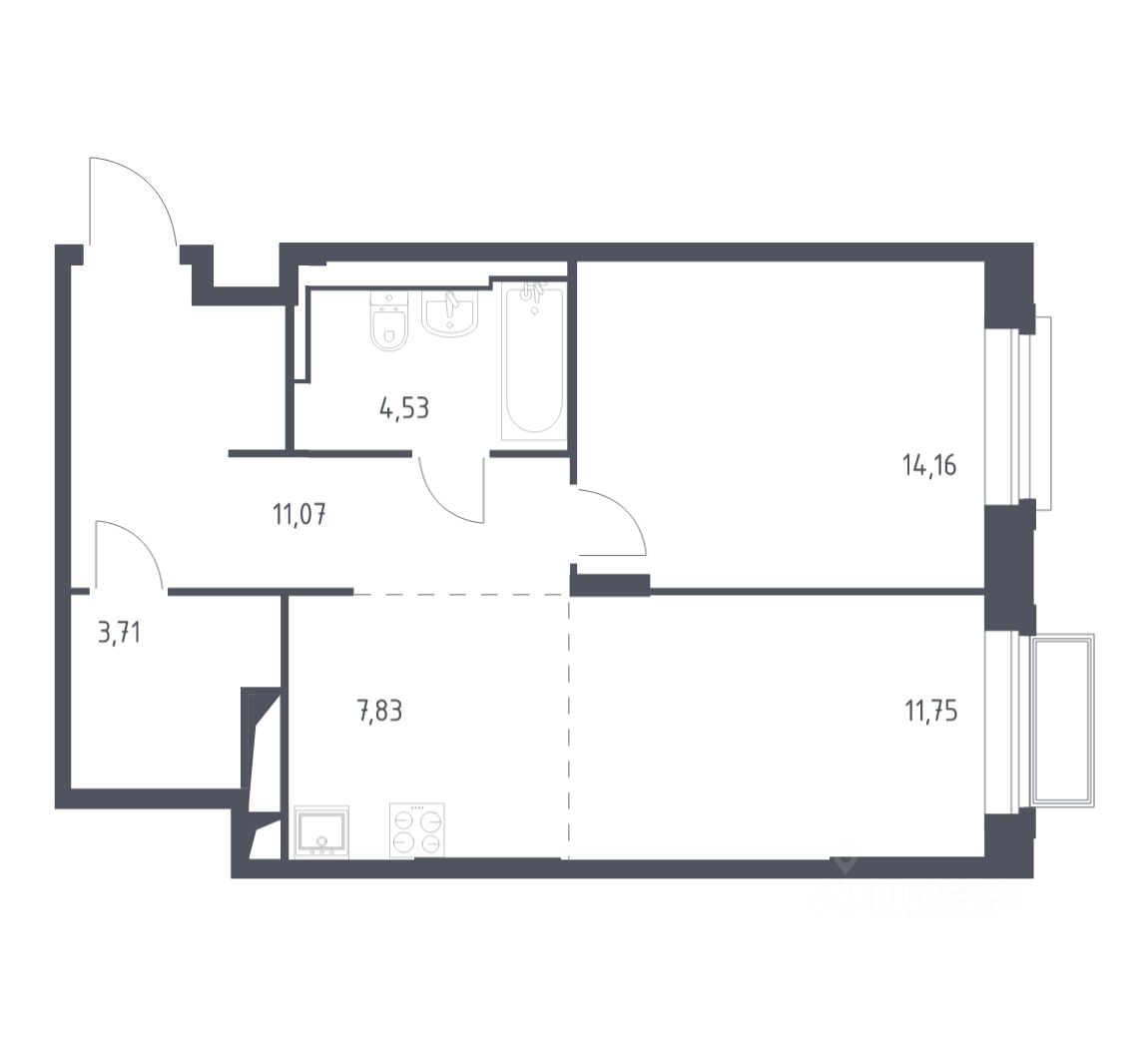Общая площадь53 м2