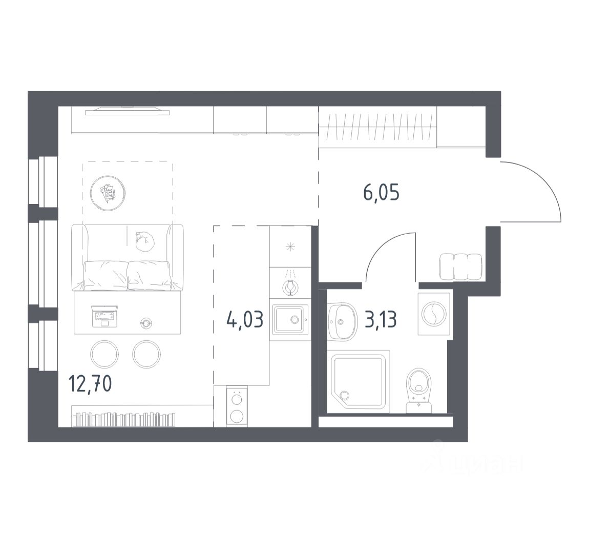 Строим кварталы для жизни с заботой о будущем. Предлагается студия комфорт-класса площадью 25,91 кв.м в корпусе 2 на 14-м этаже, в жилом комплексе ''Квартал Авиаторов''.
