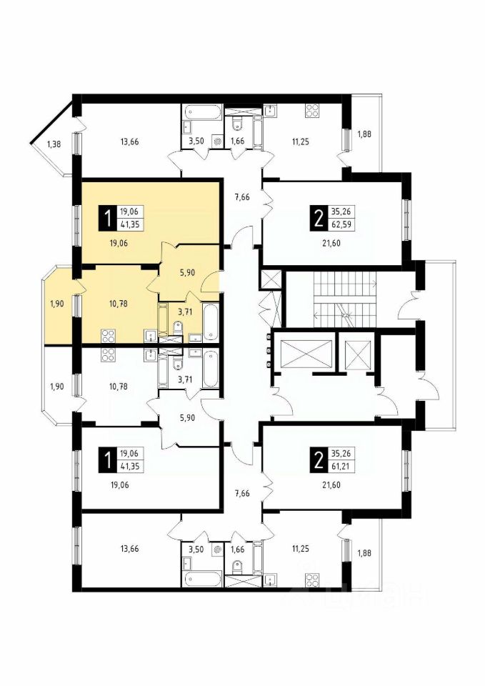 Продаётся 1-комнатная квартира в сданном доме (Корпус 41), срок сдачи: 4-кв. 2025, общей площадью 41.35 кв.м., на 10 этаже.