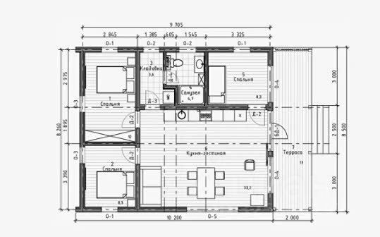 ВНУТРЕННИЕ СТЕНЫ: Каркас из сухой строганной доски 145 х 45 мм Звукоизоляция 100 мм Rockwool Пароизоляционная мембрана Ondutis smart