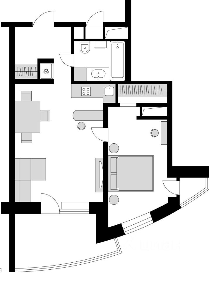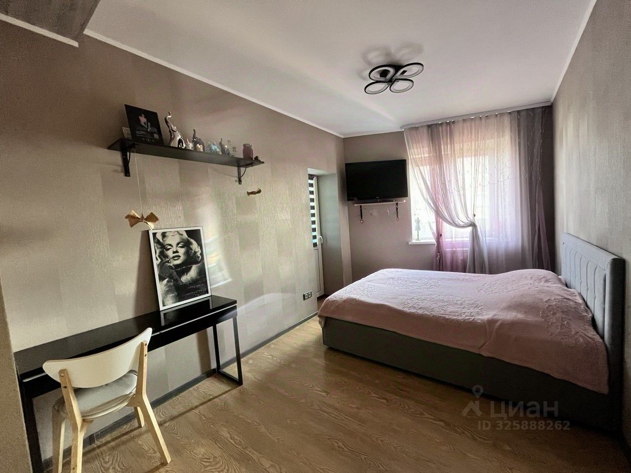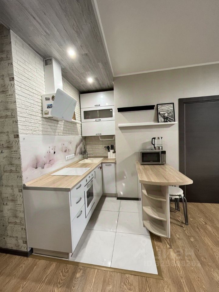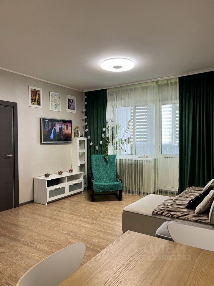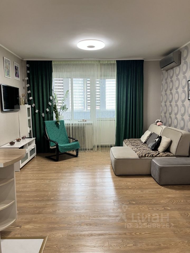 Просторная кухня-гостиная с выходом на застекленную лоджию. Кухня оборудована стильной мебелью и техникой. Изолированная спальня с балконом. В квартире есть гардеробная, а также шкафы для хранения вещей. Кондиционер, тёплый пол. Окна выходят во двор.