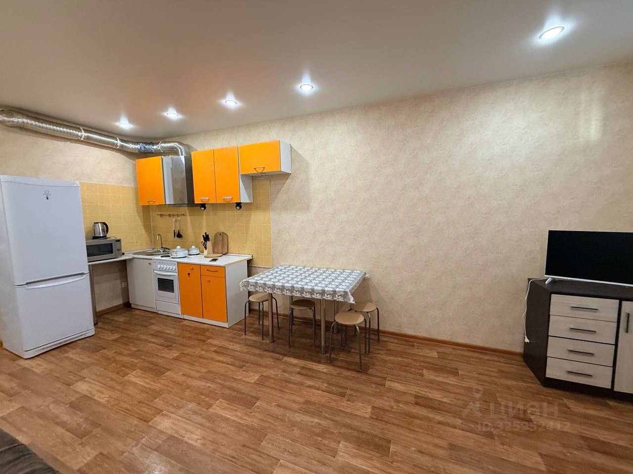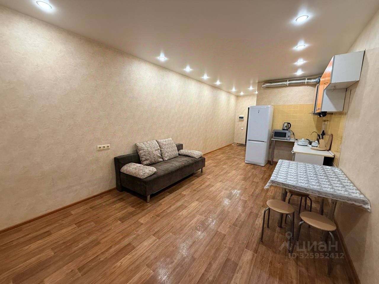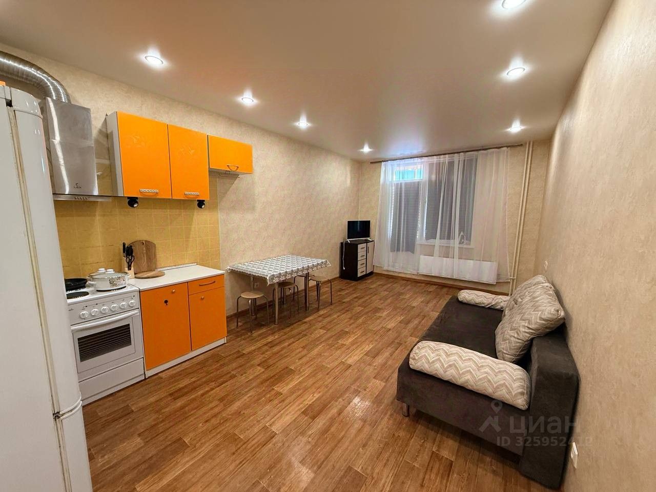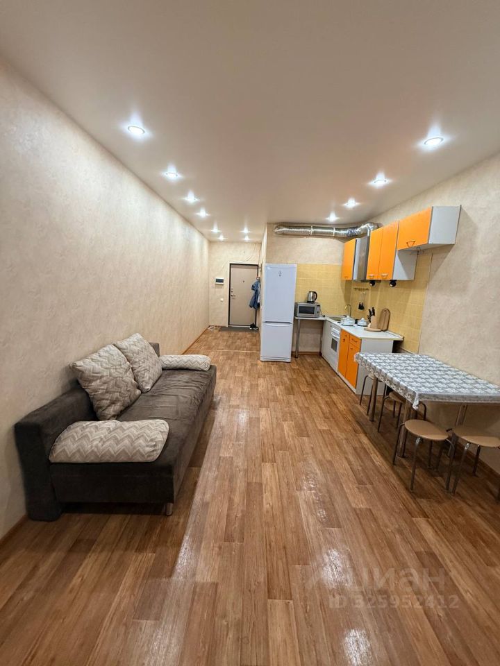 Новое Павлино. Студия. Укомплектована всей необходимой мебелью и техникой. Электрическая плита, вытяжка, микроволновая печь, стиральная машина, холодильник, эл чайник, телевизор. Спальное место диван. Комод. Шкаф приобретается. Застекленная лоджия. Санузел совмещенный с ванной.