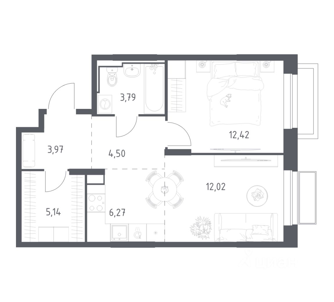 Общая площадь48,11 м2
