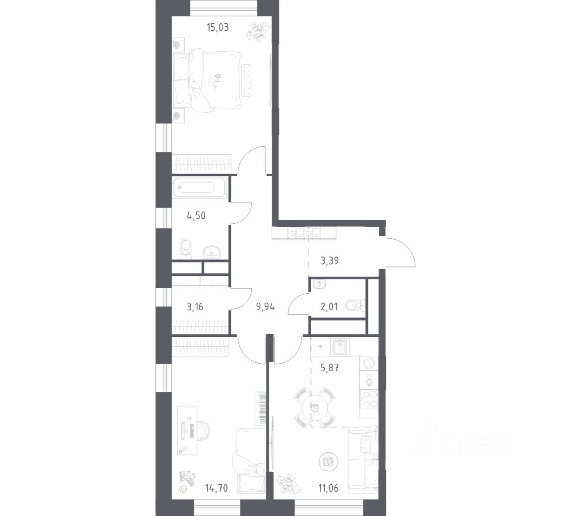 Квартиры в комплексе сдаются с готовой отделкой в универсальных тонах. В комнатах и прихожей будут обои, натяжные потолки и ламинат, а в санузлах — керамогранит на полу и керамическая плитка на стенах. Мы подведем все коммуникации и установим сантехнику. Чтобы переехать сразу после получения ключей, можно заказать готовый интерьер с мебелью и декором.
