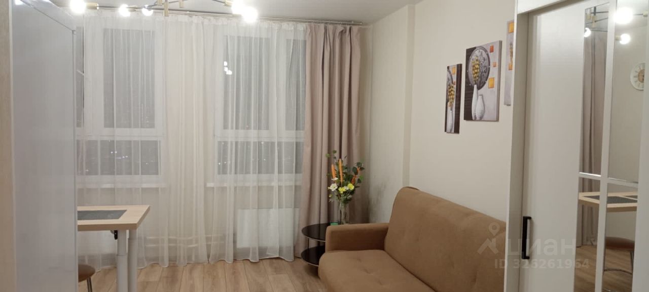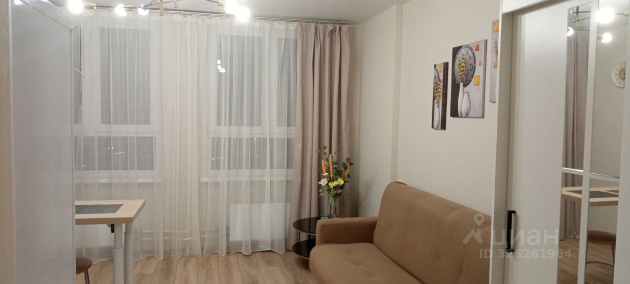 Студия расположена на 15м этаже с шикарным видом закат. Общая площадь квартиры 23 м2.