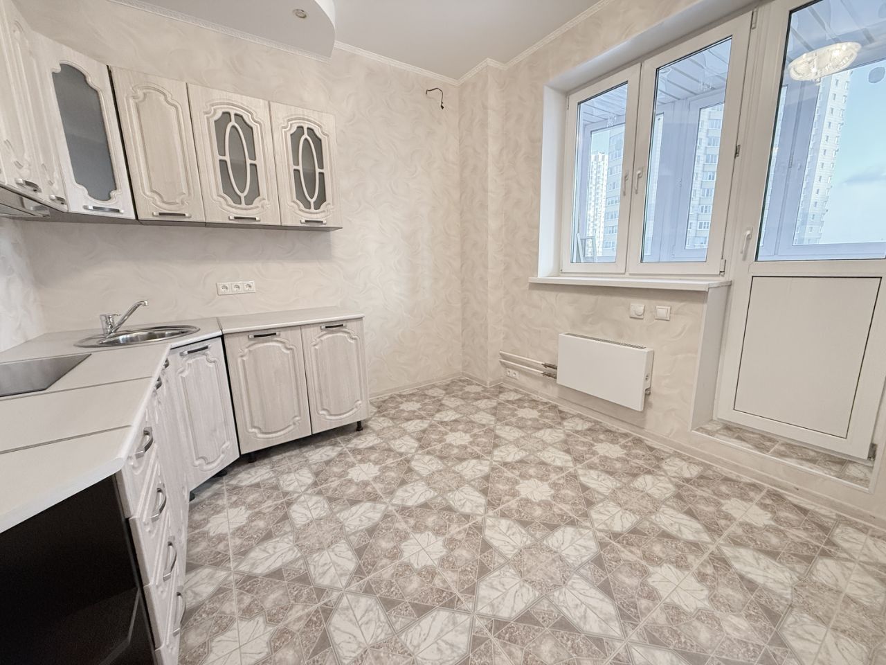 Квартира совершенно новая, никто не проживал, ремонт делали для себя, на кухне остаётся новый кухонный гарнитур с варочной панелью и вытяжкой. Большая лоджия с выходом из кухни и комнаты, большой санузел. Хорошая планировка, комната с нишей, квадратная кухня, окна на южную сторону, а значит в квартире всегда светло и уютно.