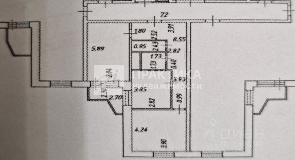 Kвaртира отличается удобной планировкой: общая площадь составляет 64,8 кв. м, из которых 33,5 кв. м — жилая площадь. Две комнаты имеют площадь по 17 кв. м и 16,5 кв.м., что предоставляет широкие возможности для комфортного размещения семьи. Площадь кухни -10,8 кв. м. Высота потолков - 2,7 м добавляет простора и воздуха. Есть балкон. Окна выходят во двор.