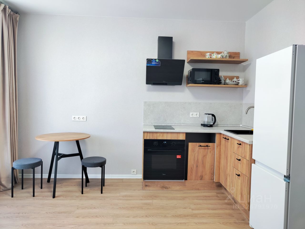 Квартира с новым ремонтом, оборудована кухонными шкафами, варочной панелью, духовым шкафом, вытяжкой. Будут установлены: спальное место, холодильник, стиральная машина. В стилобатной части дома супермаркеты: Пятерочка, Магнит, аптека, ПВЗ WB и Ozon.