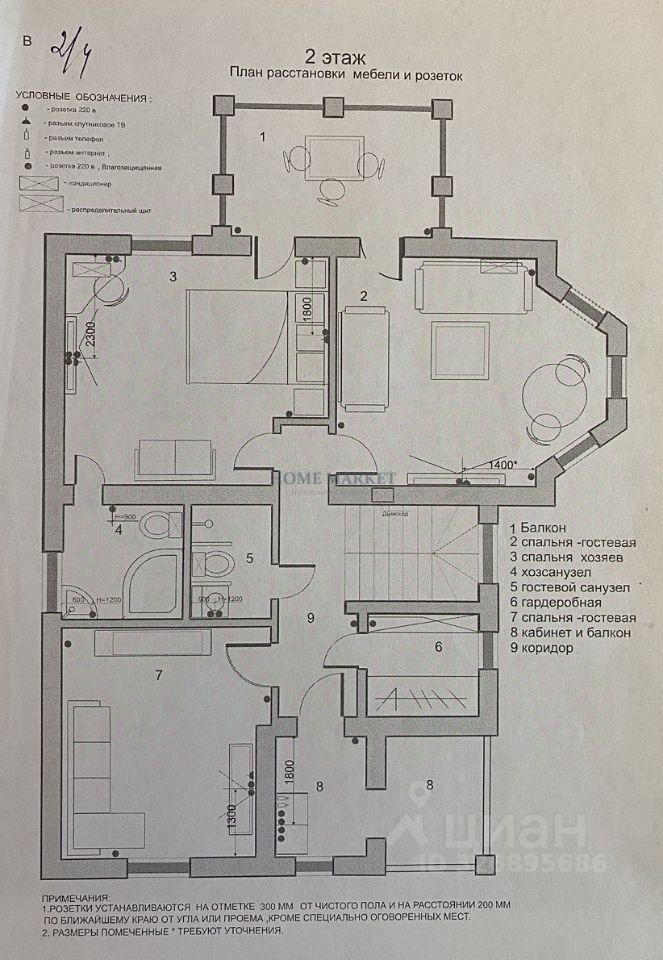 2 этаж- спальная комната, душевая комната, спальная комната с ванной комнатой и балконом, спальная комната с балконом, комната с видеонаблюдением и балконом, кладовая.