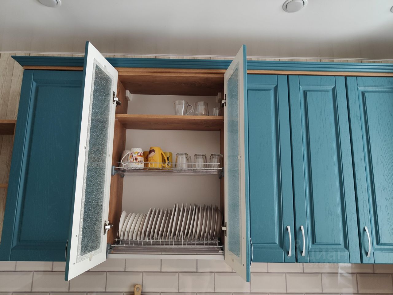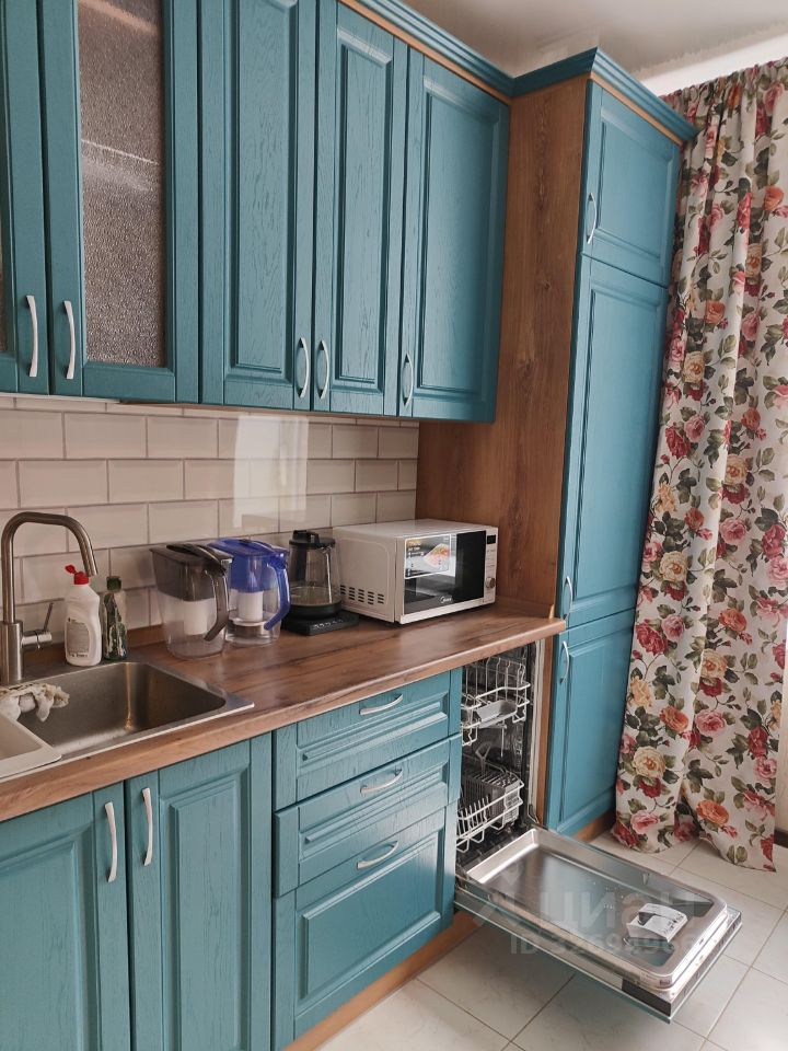 В квартире есть посудомоечная машина, встроенный холодильник, стиральная машина, микроволновка, чайник, электрическая плита и духовой шкаф.