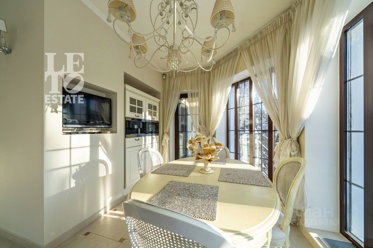 Арт. 129219757 Вашему вниманию предоставляется прекрасный загородный дом площадью 370 кв. м в коттеджном поселке Николина Гора, расположенном в 21 км от МКАД по Рублево-Успенскому шоссе. Современный интерьер с классическими элементами укомплектован мебелью, бытовой техникой Miele и сантехникой из Италии.